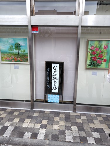 沼津駅南口のさんさん通り「まちかどアートギャラリー」。10月の展示として、伝統的な和紙ちぎり絵の作品が秋の街角を彩ります。