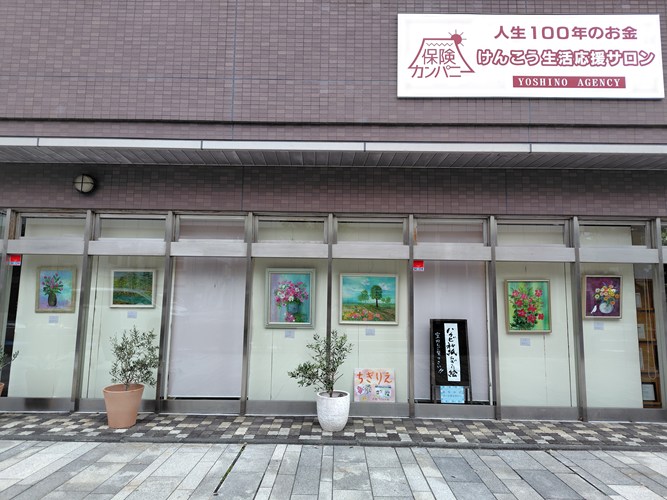 まちかどアートギャラリー(吉野エージェンシー・保険カンパニー)は、中央公園の交差点すぐ横。散歩の途中でふと目に飛び込んでくる、和紙が織りなす繊細な美の世界をぜひお楽しみください。